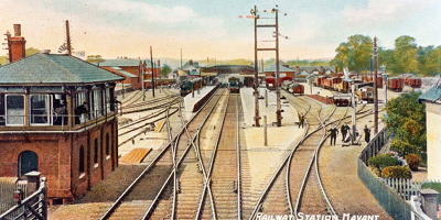 Railway in Havant and surrounding stations. By virtue of its position at the eastern end of the narrow coastal plain giving access to Portsmouth, Havant has always been intimately connected with any scheme of canal or railway transport between London and Portsmouth. Reproduced here with permission of Ralph Cousins.